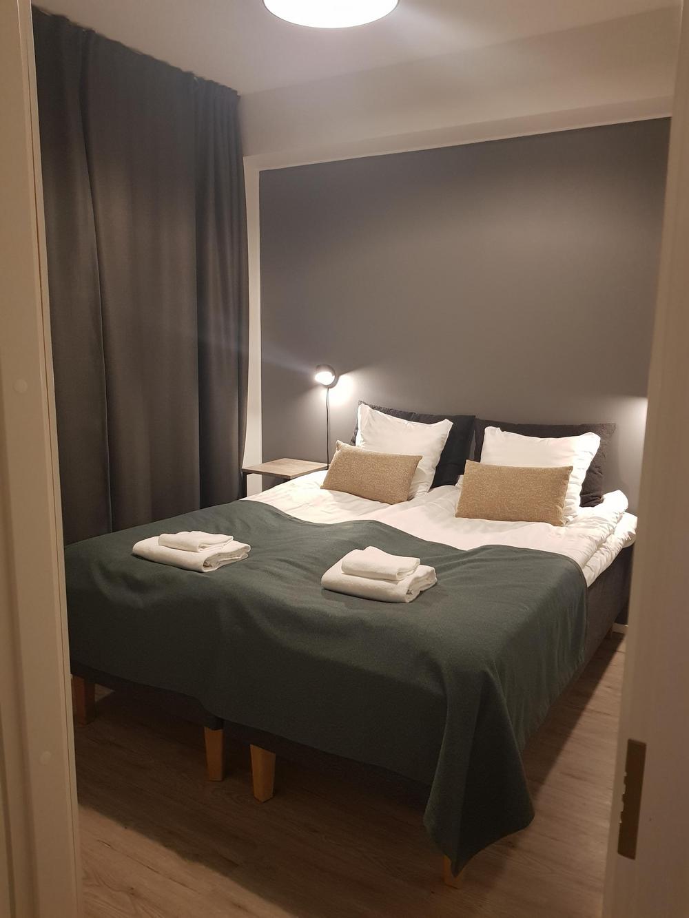 - Makuupaikkoja on 6 hengelle. Toisessa makuuhuoneessa parisänky, toisessa erilliset vuoteet ja olohuoneessa vuodesohva kahdelle hengelle.